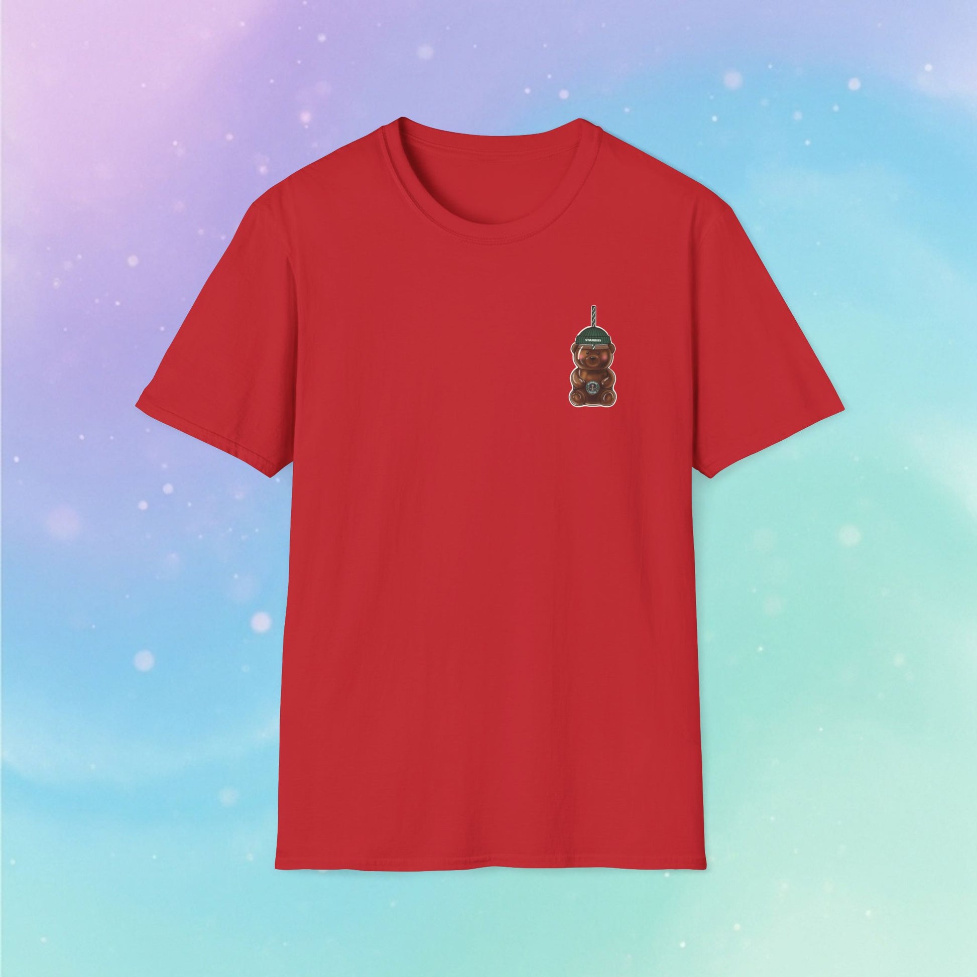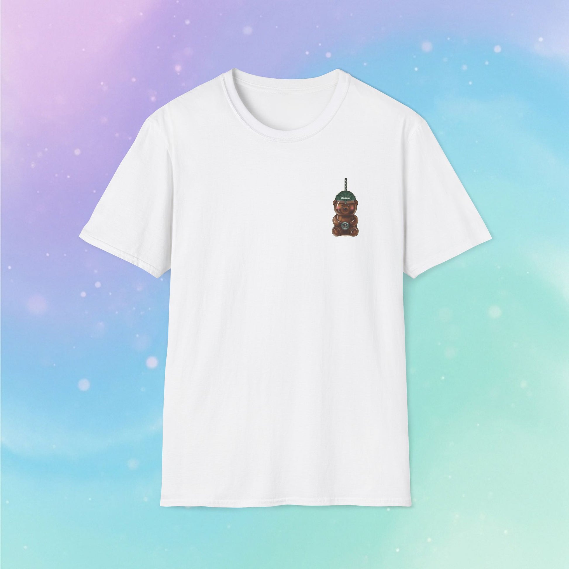 Bearista Starbies Chest Print T-Shirt | Cute Aesthetic Coffee Lover Gift | Retro Honey Bottle Graphic Tee | Minimalist Unisex Viral tiktok